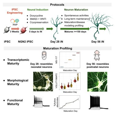 在这项研究中,团队结合了上述最新进展,并解决了剩余的关键技术问题,以大规模生成长期稳定的谷氨酸能NGN2 iN培养物。团队彻底分析了实验细胞,直到第56天,以提供参考数据。通过使用分析数据,团队开发了神经元成熟测定法,并确定了使用这些NGN2 iN建模神经系统疾病的适用性。最后,团队报告了一种方案,用于设计类似于这项研究中使用的商业品系的诱导型NGN2 iPSC系。总之,这项研究为开发强大的神经系统疾病体外模型,提供了强大的工具。