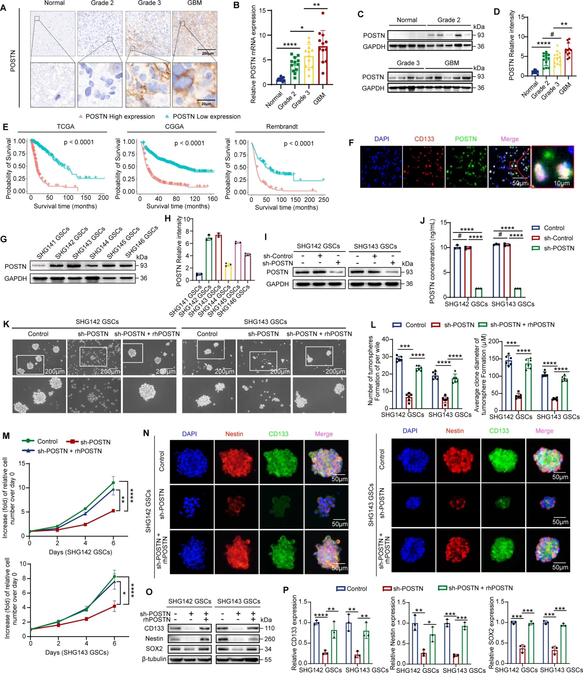 POSTN在胶质母细胞瘤中高度表达,并促进胶质母细胞瘤干细胞的自我更新