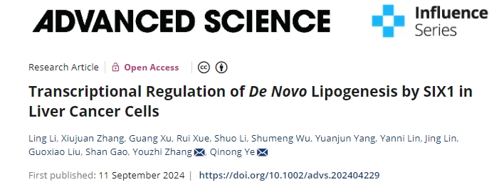9月11日,北京生物技术研究院与北京药理学与毒理学研究所研究人员合作在期刊《Advanced Science》上发表了题为“Transcriptional Regulation of De Novo Lipogenesis by SIX1 in Liver Cancer Cells”的研究论文,本研究中,研究人员发现转录因子SIX1通过乳腺癌扩增的组蛋白乙酰转移酶1 (AIB1)和赖氨酸乙酰转移酶7 (HBO1/KAT7)直接增加DNL相关基因的表达,从而促进脂肪生成。SIX1的表达受胰岛素/lncRNA DGUOK-AS1/microRNA-145-5p轴的调控,也调控DNL相关基因的表达和DNL。DGUOK-AS1/microRNA-145-5p/SIX1轴在体内外调控肝癌细胞增殖、侵袭和转移。在肝癌患者中,SIX1表达与DGUOK-AS1、SCD1表达呈正相关,与微小RNA -145-5p表达呈负相关。DGUOK-AS1是预测预后的良好指标。因此,DGUOK-AS1/microRNA-145-5p/SIX1轴和DNL与肿瘤生长和转移密切相关,可能成为肝癌治疗干预的途径。