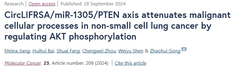 | 导读 | 非小细胞肺癌(NSCLC)通常在晚期被诊断出来,这限制了治疗干预的有效性。本研究旨在探讨新发现的circLIFRSA在PTEN/AKT信号通路中的作用及其在非小细胞肺癌恶性过程中的作用。 |