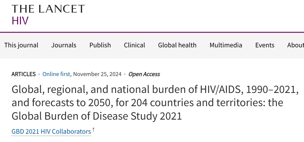 2024年11月25日,Austin Carter等各国科学家在期刊《HIV》上发表了题为“Global, regional, and national burden of HIV/AIDS, 1990–2021, and forecasts to 2050, for 204 countries and territories: the Global Burden of Disease Study 2021”的研究论文。团队的预测表明,继续保持目前的艾滋病毒控制水平,不太可能在2030年之前实现降低发病率和死亡率的宏伟目标,全球将有4,000多万人在未来几十年内需要继续终身抗逆转录病毒治疗。全球社会需要做出持续和实质性的努力,以取得必要的进展,实现并维持艾滋病这一公共威胁的终结。