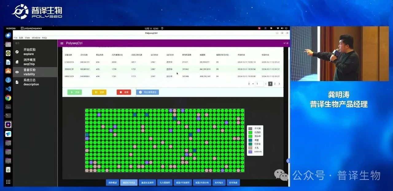 在发布会现场,普译生物用PolyseqHive纳米孔测序仪进行了现场满负荷实测演示,且同步线上直播。与会嘉宾共同见证PolyseqHive的6张芯片独立控制单元的现场测序盛况, 现场/直播实时展示了实测数据和质控结果,让观众面对面感受到了真实的测序场景!