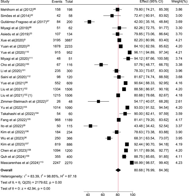 说明人工智能在阴道镜检查中诊断准确性的森林图。