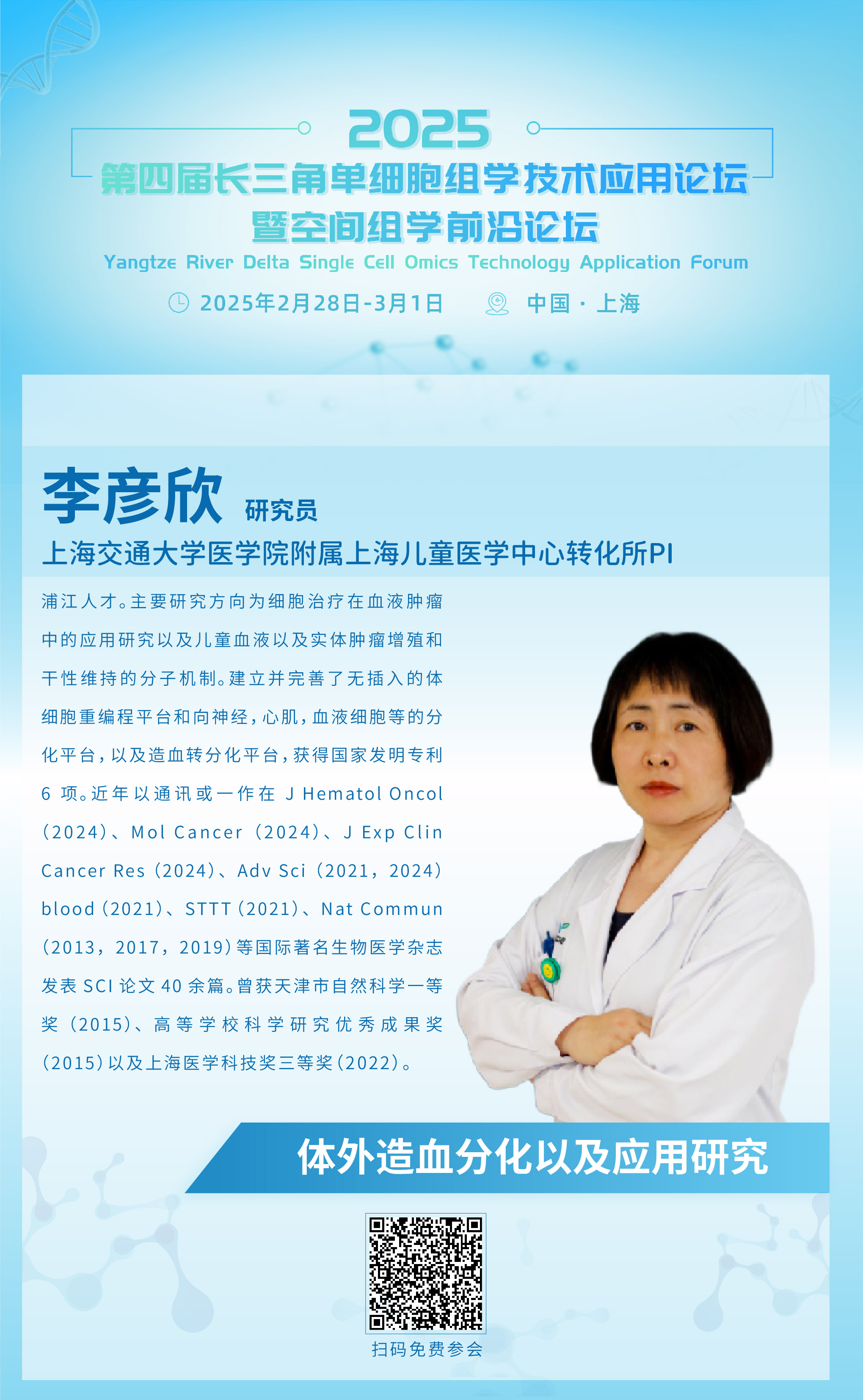 【专家风采】上海交通大学医学院 李彦欣研究员受邀出席第四届长三角单细胞组学技术应用论坛暨空间组学前沿论坛作主题报告