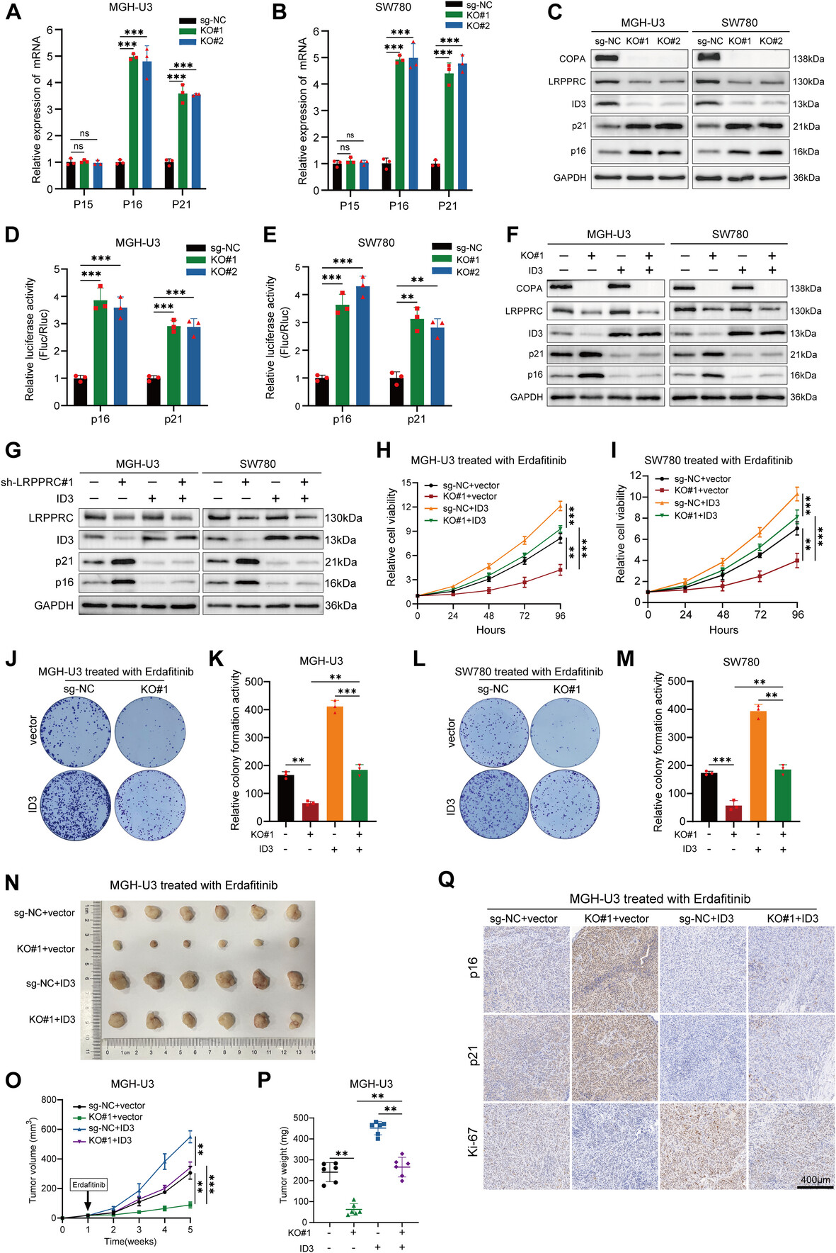 COPA/LRPPRC/ID3 通路通过 p16 和 p21 调节厄达替尼敏感性
