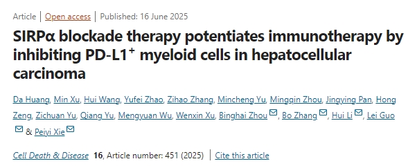 6月16日,复旦大学/南昌大学研究人员合作共同在期刊《Cell Death&Disease》上发表了研究论文,题为“SIRPα blockade therapy potentiates immunotherapy by inhibiting PD-L1+ myeloid cells in hepatocellular carcinoma”,本研究旨在研究TIMs的潜在分子靶点并揭示其潜在机制。通过体内实验,研究人员发现抗SIRPα治疗抑制肿瘤生长,伴随CD8+ T细胞浸润增加和TIMs(包括MDSCs和巨噬细胞)减少。研究人员发现抗sirp α抑制了髓系细胞的免疫抑制功能、迁移和PD-L1的表达。在一系列的体内实验中,研究人员证明了sirp α阻断治疗的抗肿瘤和免疫活性。综上所述,SIRPα阻断治疗逆转了免疫抑制的TIME,为提高抗pd - l1治疗肝癌的疗效提供了一个有前景的治疗理论基础。
