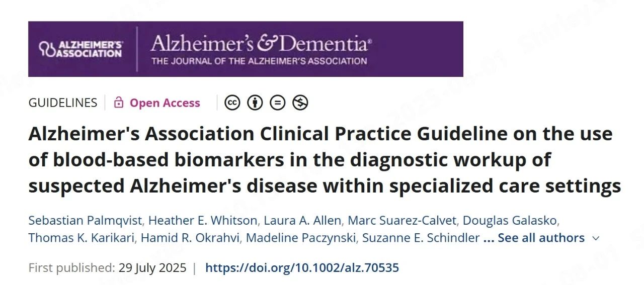 指南发布官方网站:https://alz-journals.onlinelibrary.wiley.com/doi/10.1002/alz.70535