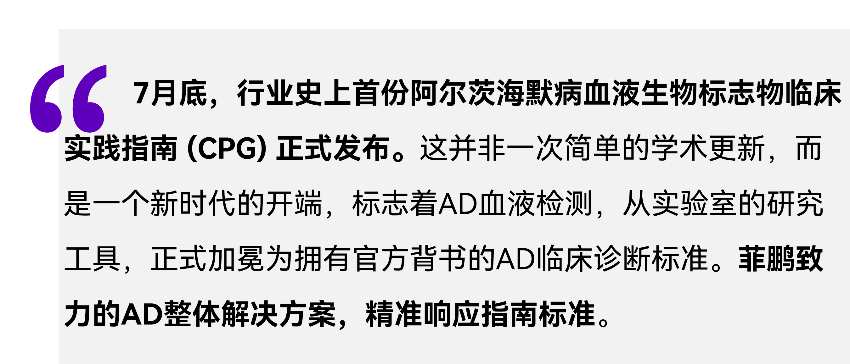 对于产品开发者、学术研究者以及所有致力于攻克AD难题的IVD从业者而言,这意味着什么?菲鹏看到了这份指南直击的深刻的市场变革将带来的战略意义、商业价值,以及对客户和社会发展的长远利益: