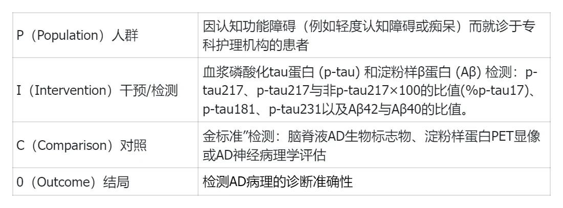 表3:血液生物标志物临床实践指南(BBM CPG)的PICO临床问题框架