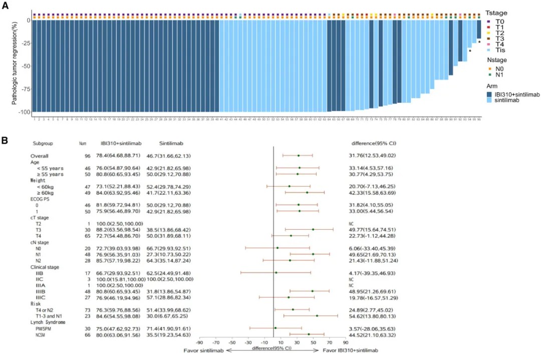 创新组合治疗组(52例):接受IBI310(抗CTLA-4)+信迪利单抗(抗PD-1)双免疫治疗,共2个治疗周期。