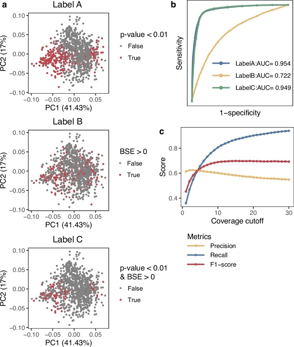 候选位点识别:先用二元分类器结合两个严格指标——Wilcoxon检验(信号均值偏离度)和碱基调用错误(插入/缺失/错配),精准筛选非经典修饰kmer(连续核苷酸片段),排除假阳性;
