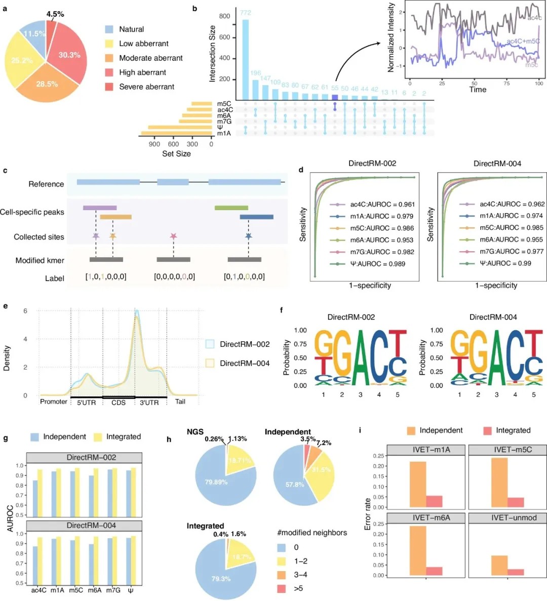 修饰类型与定位:基于注意力机制的多标签神经网络,同时解析kmer内的修饰类型及具体位置。模型训练数据来自天然RNA的分子级特征,保留了真实的表观转录组复杂性。