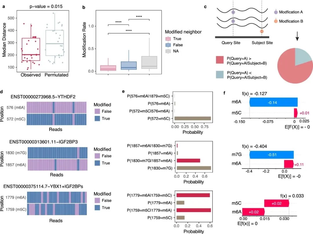分子水平:相邻修饰会互相抑制——若一个位置有m6A,其100bp内其他修饰的出现概率显著降低。
