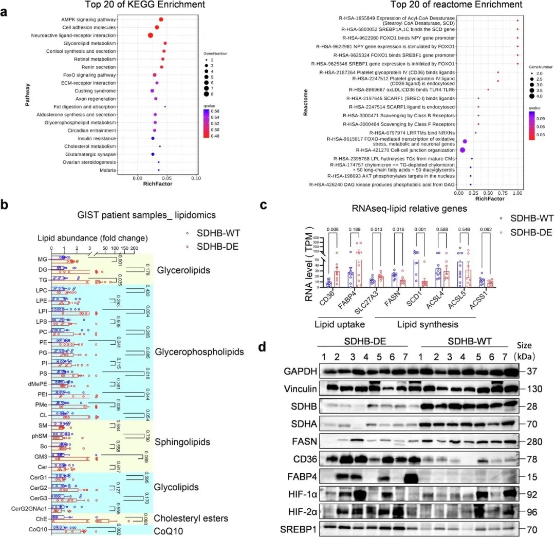 琥珀酸脱氢酶缺陷型胃肠道间质瘤中的脂质代谢差异