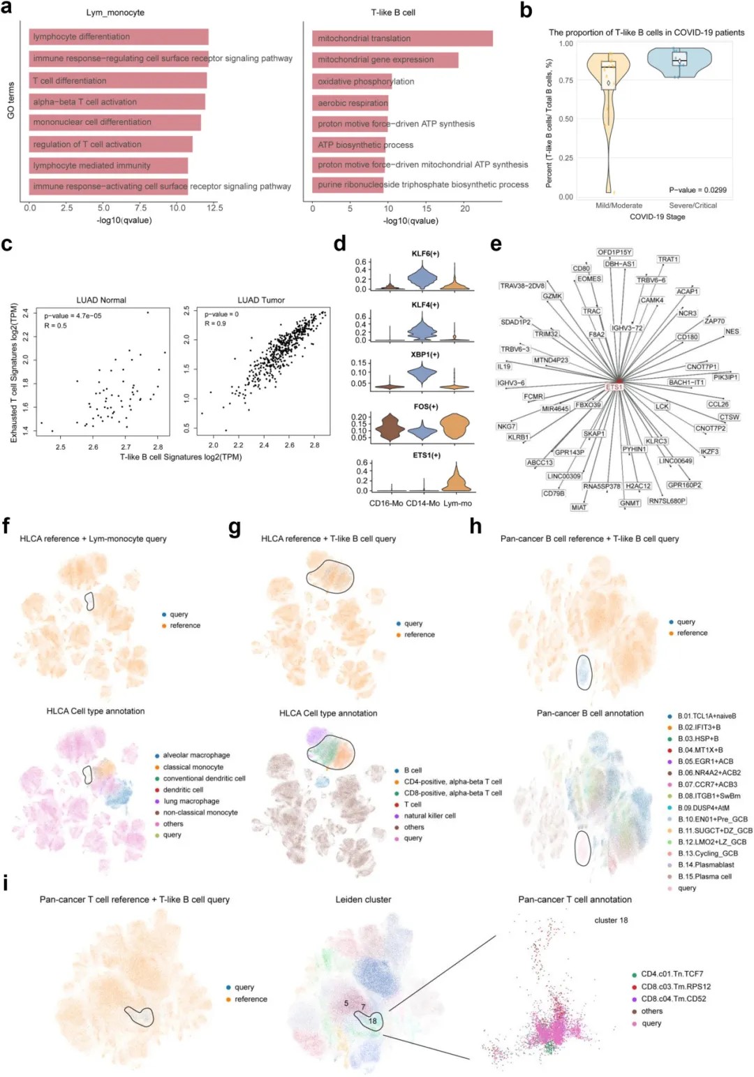 T样B细胞(T-like B cells):同时携带T细胞标记(如RGS1、GZMA)和B细胞特征,在COVID-19重症患者、肺癌及慢性阻塞性肺病(COPD)中比例升高,可能通过补偿T细胞功能缺陷参与免疫调节。
