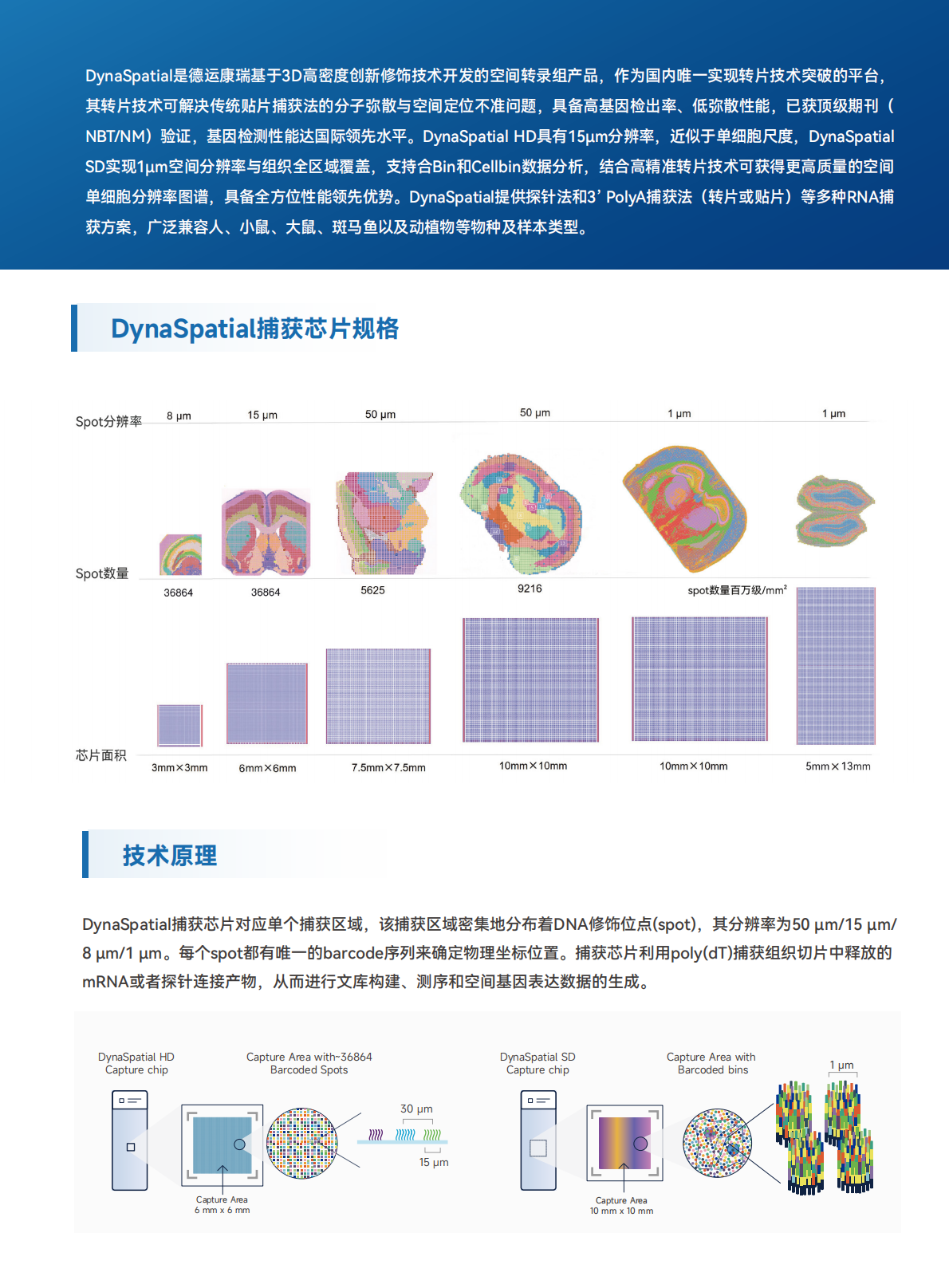 德运康瑞致力于空间组学技术的国产创新,在空间组学领域及其临床转化上处于行业领军地位。公司拥有领域内全球技术发明人级别的资深科学家,在国内率先推出具有亚细胞分辦率的空间原位测序(ISS)技术,并与多家顶尖医院临床转化合作,有望成为革命性的临床病理工具。公司自研DynaSpatial空间转录组系列商业化产品,通过高密度创新修饰等技术,助力科学家发现更多的空间低表达基因。