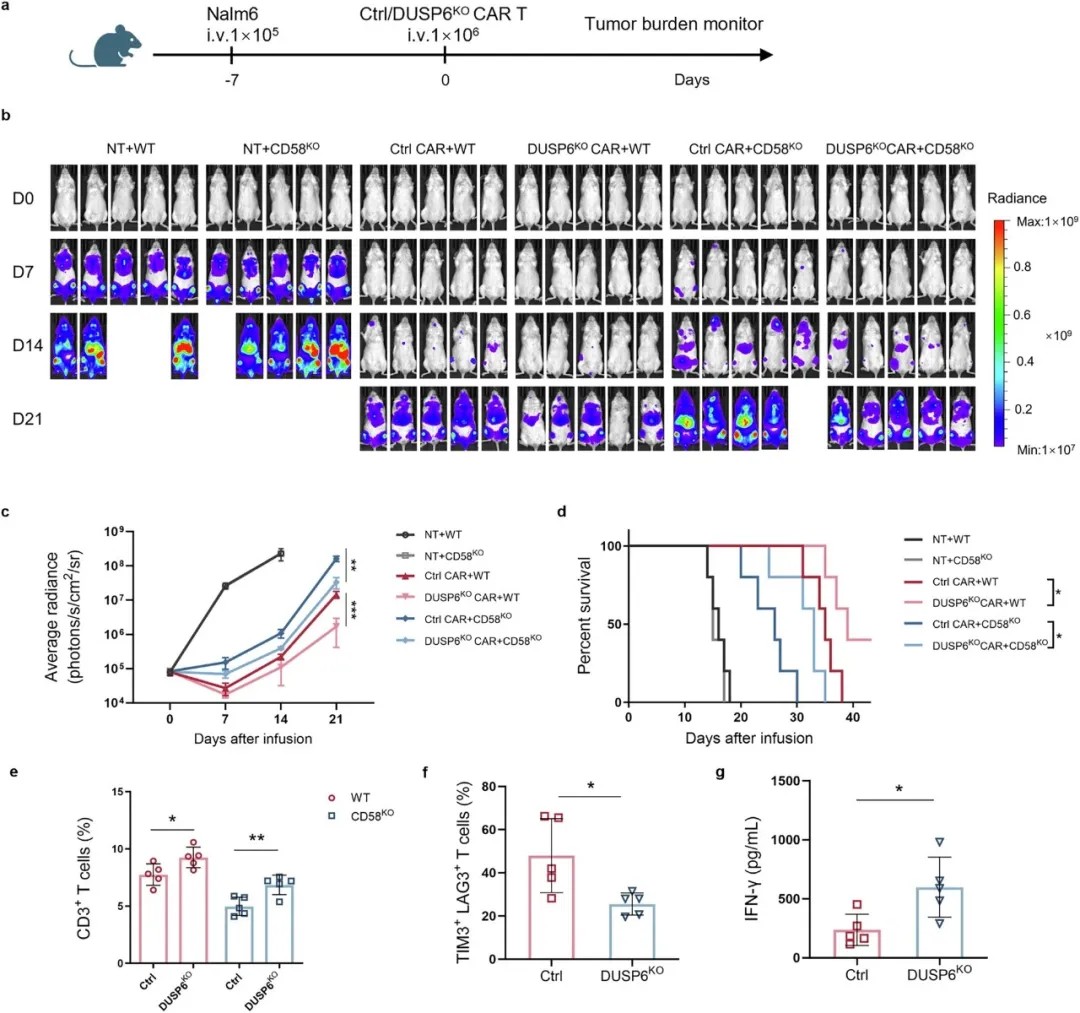DUSP6的基因敲除在体内增强了CAR-T细胞对肿瘤CD58缺失的抵抗能力