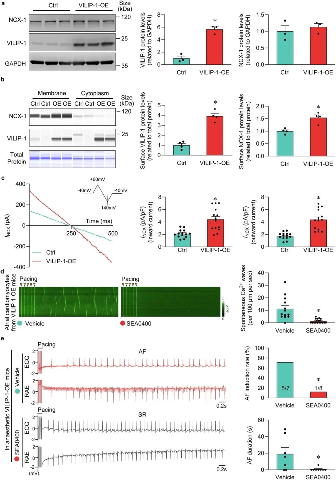 心房肌细胞特异性过表达VILIP-1通过增强NCX-1的膜表达和功能来增加房颤(AF)易感性