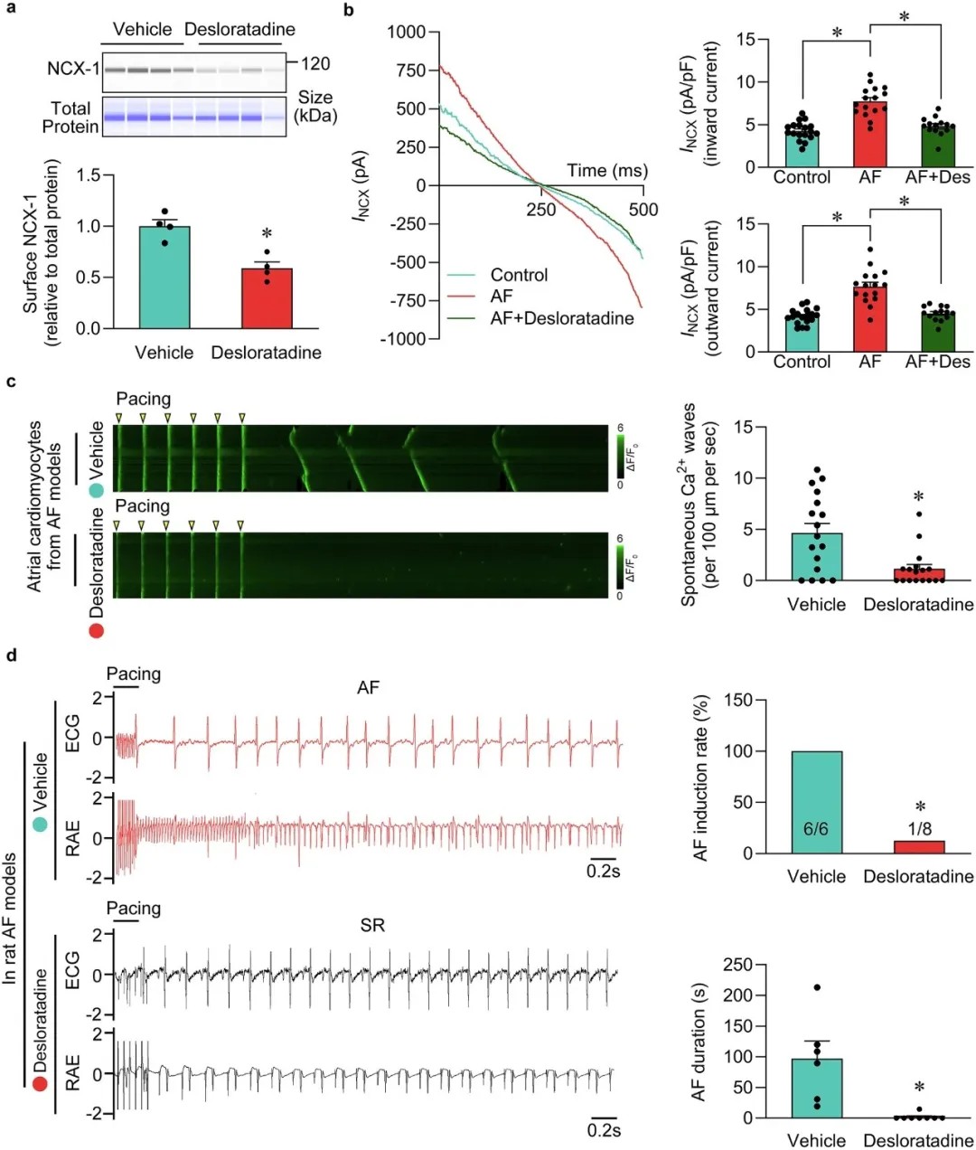 在房颤大鼠模型和人类房颤患者的心房细胞实验中,这两种药物均能有效降低细胞膜上的NCX-1水平,恢复正常的钙离子处理能力,并显著降低房颤的易感性。