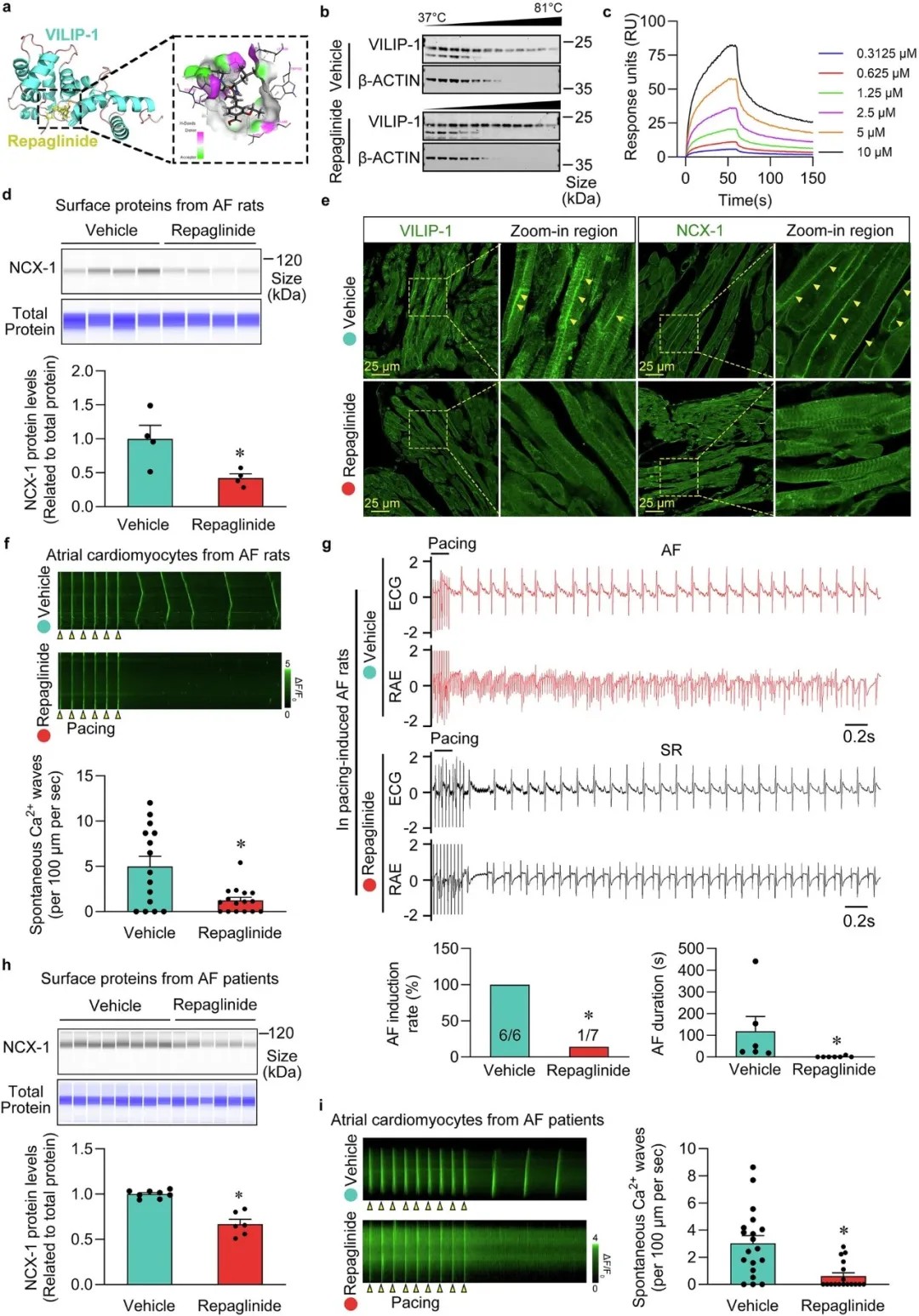 近日,同济大学陈义汉院士/解端阳副教授、华中科技大学同济医学院附属协和医院董念国教授团队一项发表于国际知名期刊《Signal Transduction and Targeted Therapy》的最新研究,首次揭示了一种名为“视锥蛋白样蛋白1”(VILIP-1)的蛋白质在房颤(Atrial Fibrillation, AF)发生中的关键作用,并明确了其通过破坏心肌细胞钙离子稳态导致心律失常的分子机制。更为重要的是,研究团队发现,两种已获美国食品药品监督管理局(FDA)批准的临床药物——瑞格列奈(repaglinide)和地氯雷他定(desloratadine)——能够靶向VILIP-1或其修饰过程,有效恢复钙稳态并降低房颤易感性。这一发现为全球数千万房颤患者带来了全新的治疗思路。